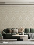 Le Beige clair, légèrement chatoyant de l’impressionnant papier peint baroque est empreint d’une élégance froide, intemporelle. Un motif de papier peint ample et classique de fleurs stylisées et de guirlandes de feuilles est imprimé en relief dans la surface en vinyle résistante. Vous pouvez sentir les coutures décoratives entre lesquelles le tissu semble renflé, comme vous le pourriez sur un tissu précieux brodé à la main. Sa texture met en valeur les dimensions de votre pièce et crée une atmosphère sophistiquée.