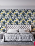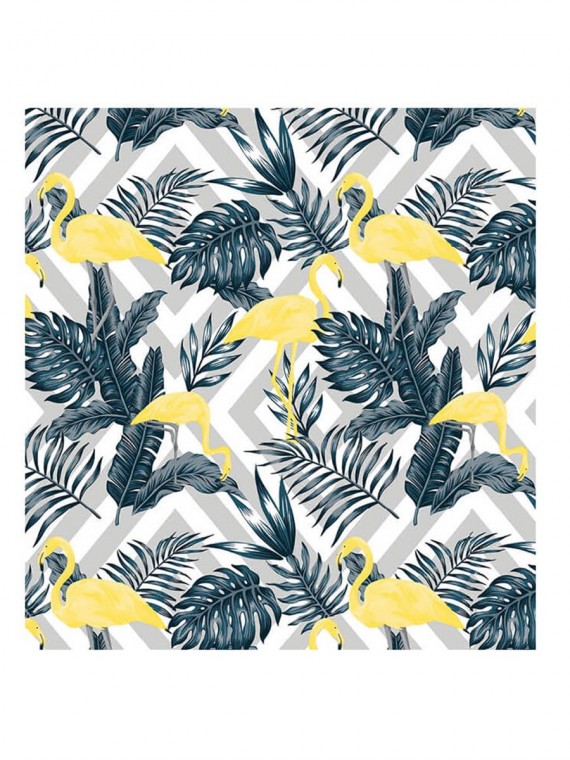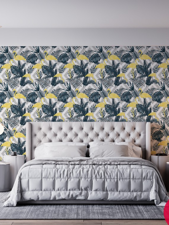 PAPIER PEINT TROPICAL FLAMAND BLEU AVEC JAUNE 2626